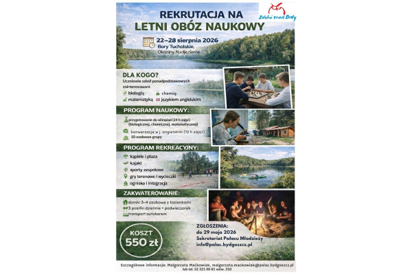 Obóz naukowy 2026 - rekrutacja Program "Zdolni znad Brdy"
